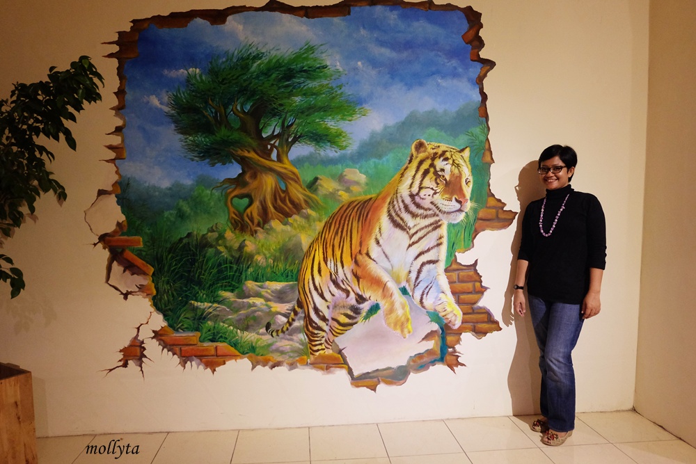 Sesaat sebelum memasuki kafe kita bisa melihat sebuah mural (lukisan dinding) bergambar harimau. Mural seperti ini mengingatkanku akan Georgetown di Penang Malaysia. *berfoto dulu ah deket si tiger
